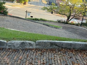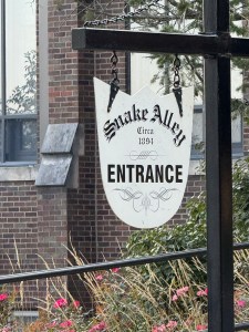 After arriving in Burlington we went in search of Snake Alley. It is supposedly the crookedest street in the world. Constructed in 1894 from brick and limestone, it features a series of seven curves—five half-curves and two quarter-curves—that drop 58 feet over 275 feet, offering a unique test for drivers. A young lady was having her senior pictures taken on the road. Glad we didn’t hit her. The drive down in the woodie was interesting. Brakes are a requirement. Cars are only allowed down in warm weather. To us the curves seemed closer together than on Lombard Street in San Francisco.