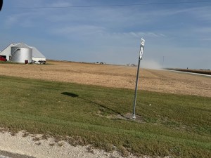 The terrain most of the day was flat with fields of corn and soy beans. They are harvesting in some fields. Some really large farm equipment. Some of the harvesting kicks up a lot of dust. Unfortunately the woodie does not have power windows.