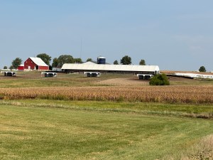 The terrain again today was farmland and rolling hills. We did see a couple of large feed lots and smelled several others. A large percentage of the semis were cattle trucks.