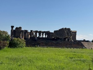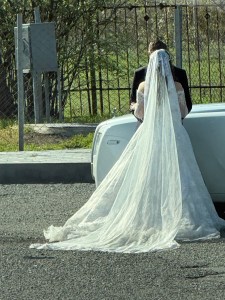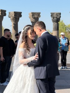 The last stop of the day was Zvartnots Cathedral, a 7th-century Armenian cathedral located near Vagharshapat, Armenia. It is a UNESCO World Heritage Site, renowned as a masterpiece of early medieval Armenian architecture. The cathedral was constructed between 641 and 661 but was destroyed by a powerful earthquake in the 10th century. A bride and groom were having photos taken at the site. Her dress and veil were both very long and getting dirty dragging on the ground. It was rather funny watching them trying to get all of that in the car for the get away photos.