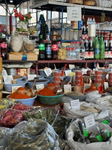 We start today at the produce market which has lots more food than just produce. Once again we are early so some of the vendors are not open. The market is indoors and this time of year there are no flies. The smell is good too. The meat counters even look clean and fresh. Everything is arranged so beautifully. They have many items we do not. This is especially true for fruits and vegetables.