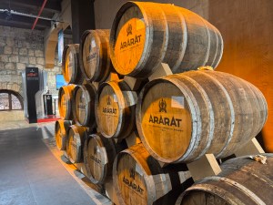 Next stop was the Yerevan Ararat Brandy Distillery. It was founded in 1877. Quite the facility. One room has barrels of brandy with the names of governmental officials who have visited the distillery. None of them were Americans. We sampled 3 and 7 year old brandies. They sell some that is aged for 20 years. An Armenian tradition is to buy a bottle of 20 year old brandy when a baby is born. The baby’s name is put on the bottle and when they marry the brandy is served. Our guide was quite surprised to learn her folks had such a bottle with her name on it. So many guests came when she married.