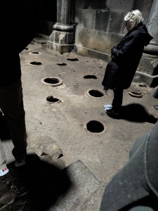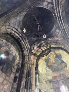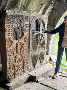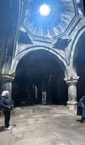 Our final Armenian site was the medieval Haghpat Monastery complex, a UNESCO World Heritage Site that doubled as a major center of learning in the Middle Ages. They had a library, outside work area, storage for food and wine. The monastery was constructed between the tenth and thirteenth centuries. The storage area was underground because the sides and top were covered with dirt and grass. Odd though because you entered without going down.