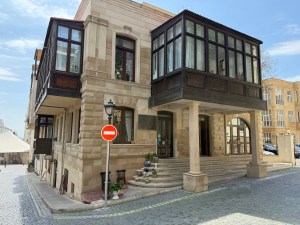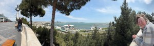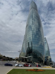 Some of the houses have balconies added on. They are usually wooden and may or may not be closed in. This is when we learned that if a man has a large stomach that is called a balcony. Rob has a small balcony for his age. We also learned that Azerbaijan is the land of fire and Baku is the Windy City. After today I am sure it rivals Chicago. The land of fire also explains why some of the glass buildings look like a flame. The oil and gas resources are the prominent income for the country.