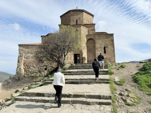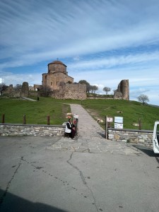 Rob did go on the tour. First stop Jvari Monastery. It’s a UNESCO World Heritage Site. According to traditional accounts, on this location in the early 4th century Saint Nino, a female evangelist credited with converting King Mirian III of Iberia to Christianity, erected a large wooden (or vine) cross on the site of a pagan temple. The cross was reportedly able to work miracles and therefore drew pilgrims from all over the Caucasus. This may be why there were a large number of opportunities to do some souvenir shopping. Lots of shops. However, the merchants were not out bothering people. Many of our group bought items to take home.