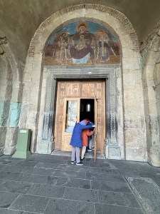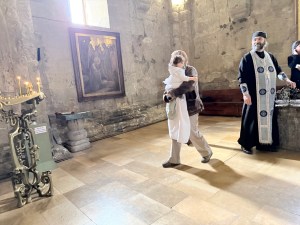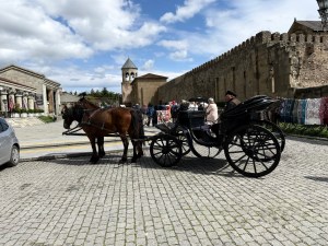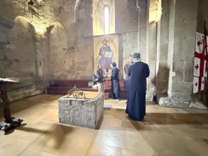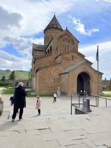 Then down into Mtskheta, one of the oldest cities in Georgia and a sacred pilgrimage site. We toured the 11th-century Svetitskhoveli Cathedral. Tradition says Christ’s mantle is buried here. The cathedral is recognized by UNESCO as a World Heritage Site. It is currently the second-largest church building in Georgia, after the Holy Trinity Cathedral. There was a traditional baptism in progress which included a traditional crying baby. It was a very long service. Several of our group watched for at least 30 minutes and had to leave before the service was completed. We felt sorry for the baby who was ready to leave after about 5 minutes.