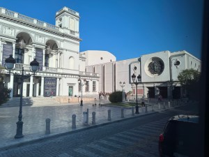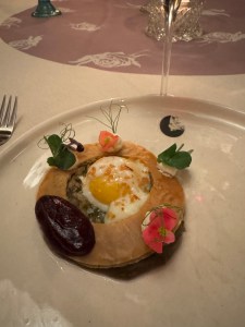For our farewell dinner we went to Barbarestan. Connie did manage to join the group. The dishes are from a 19th-century recipe book by Duchess Barbara Jorjadze. Every dish was artfully presented and served to us by the waiters. We had almost as many waiters as guests. Some of the dishes were small portions on a large plate. For the first time we did not have tomato and cucumber salad. We had a choice for main course of beef tenderloin, pork, sturgeon, rabbit or vegetarian. We both chose the beef. That was really tender steak but undercooked. Rob ordered medium well and it was well rare. Dessert was birthday cake for one of the group. We all sang Happy Birthday. We were also entertained by folk music played on a guitar and accordion.