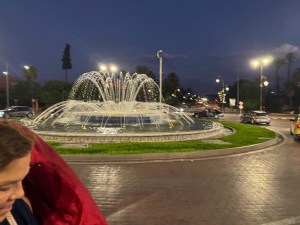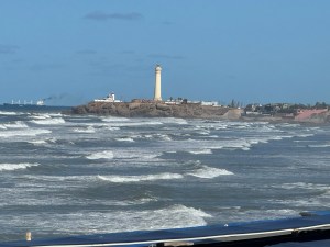 We went to the ocean for restaurants for lunch. Lunch is on our own and there were several to choose from. Some had ocean views and some not. The shoreline is rocky along this portion. A lighthouse is visible in the distance as is the minaret of the mosque. We chose the nearby McDonald’s so we could use the restroom. Well its closed for renovations. The drive through however is open. So we walked up to the window and ordered. We set on a bench to eat it. The service like other restaurants was slow. A small hamburger meal and a small fish meal were a total of $9.00 USD.