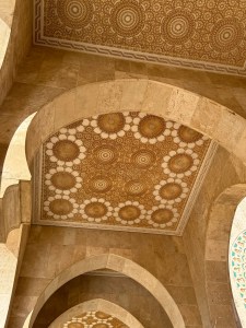 Then it was back to the mega mosque. Our guide got us further inside the complex to take pictures of the outside. This is the second tallest minaret in the world at 689 feet. It is the second largest mosque in Africa and the 14th largest in the world. The cost was estimated at 585 million euros. Funds came from the government, individuals, businesses, foreign countries and loans. 1400 men worked on it during the day and 1000 at night. A couple of us rode from the near the entrance to the mosque in a golf cart. Sure was better than the walk in the sun. We took pictures and then Rob and a few others rode the cart out so we could ride back.