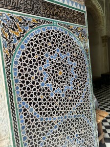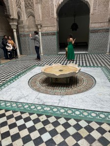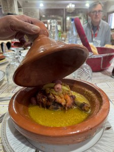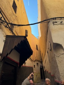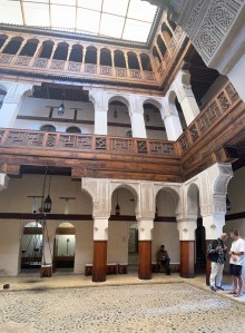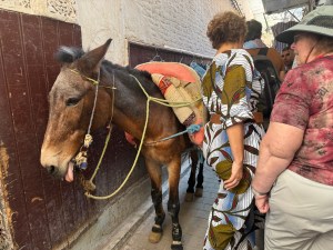 We saw the oldest university in the world, an old hotel that accommodated trades people, a carpet shop, and a leather tannery. We ate lunch in someone’s house. Food choices were similar to yesterday but not quite as good. Connie had the lemon chicken again but there was not enough sauce and the breast meat was dry. Rob had beef and vegetable couscous. It looked better.