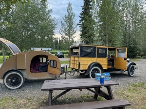 This morning while we were having breakfast at the picnic table, the mosquitoes were not quite so bad. We did see a rabbit. It was a cute little brown one. It hopped away and didn’t make much of a fuss. We also saw a squirrel run through the trees. Fortunately, we did not see a moose or a bear, even though there was a path into the woods that looked like it would accommodate either.