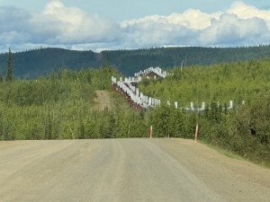 We have seen lots of the pipeline today most of it is above ground, but occasionally it dips underground. They excuse they give for going underground is for large animals to be able to cross.