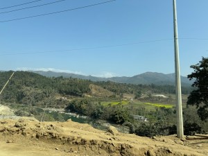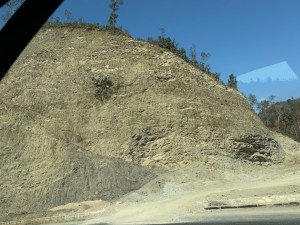 From John Day the terrain becomes more mountainous. Some of the mountains in the distance still have snow. The temperature is cooler and the wind is blowing. We definitely slow down going uphill. Where are the heavier coats. Oh, we left them at home. We usually do 50 on the flat with the trailer but only 30 going uphill. The average MPG with the trailer so far is 17.52 but it s still early. We will have a better average after a week. We had a little rain for a few miles but not too bad. We still have bugs on the windshield.The driver needs to be reminded.