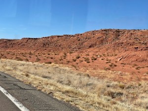 We filled with gas and left about 9 am. This is a long drive day through the Navajo reservation. As we leave town there were at least two places selling small baled hay. They range in price between $10 and $13 per bale.