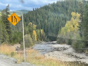 We stopped for lunch at a pull out and had our beef stick, cheese and crackers. Not much to see there. There was a newer pickup parked there that had a serious radiator problem. We offered to help but he had already called AAA.
