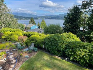 Today is a short drive but on very busy freeways. We checked in with Connie’s cousin Darlene. We will meet them for lunch in Bothell. Out to the car which had to stay outside. Well it rained last night and the car didn’t want to start. Rob finally got out and dried off the engine block. Then it started after a few more attempts. First stop is for fuel at one of the Costcos. Directions off the freeway are turn right and then left at the nearby light. The only problem is you can’t get in the left turn lane because a concrete barrier blocks the way. We had a nice visit with the cousins before heading on to Bellingham. We arrived at friends David and Barbara Ann’s mid afternoon. Rob’s daughter Amy and grandchildren Meagan and Merik arrived later and we all had a fabulous dinner on the deck overlooking the lake.