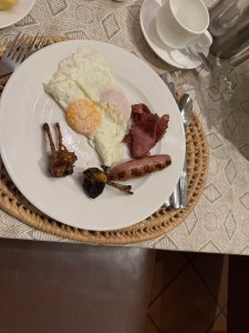 It did rain during the night. The ground didn’t seem all that wet but the hood of the car and the engine were wet. Woodie didn’t want to start but Rob managed to get it coasting and started.
