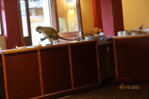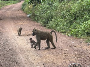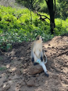 Sitting on a rock beside the road was a blue ball monkey. That is a nickname for the male. His balls seem to glow in the dark. The actual name is a vervet. We didn’t see a female to compare.