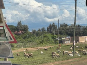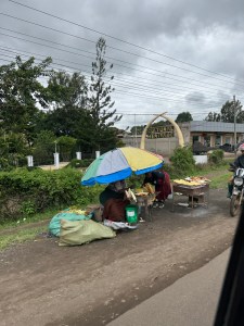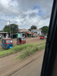 Not far from our lodging we encountered three young children on their way to school. We stopped so one of our fellow travelers could give them tootsie pops. She is from Chicago where they are made. All children wear uniforms until high school. Different schools have different colors.