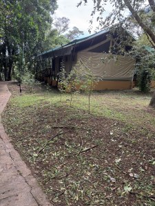 We are off to our lodging at Acacia Farm Lodge. We will be here for two nights. We had lunch pool side. Luckily we only had a brief shower. After lunch we were introduced to the staff that would be helping us. The afternoon is free time. Our rooms are large with a living room and walk in closet. A small patio is off the living room and the bedroom. Very nice place.